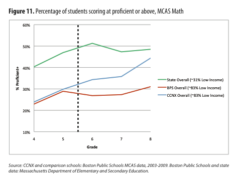 The results from this program demonstrate how well comprehensive schools work. Students that received support from City Connects in elementary school are more likely to be proficient on Massachusetts’ statewide tests. Children involved in the program significantly outperform their peers on the Stanford Achievement Test in elementary school as well.