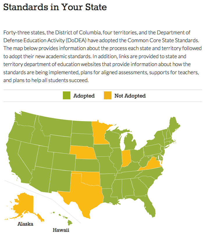 The Common Core State Standards were developed after education officials became concerned over the lack of progress American students were making in the areas of math and language arts. After years of being outperformed by children in other countries, various stakeholders came together to devise a new set of standards that would raise the bar for student learning. The result was the Common Core, which took shape over the course of 2009 and was implemented in 2010. In the years since, 43 states, Washington, D.C., the education wing of the Department of Defense, and several U.S. territories have adopted the standards.